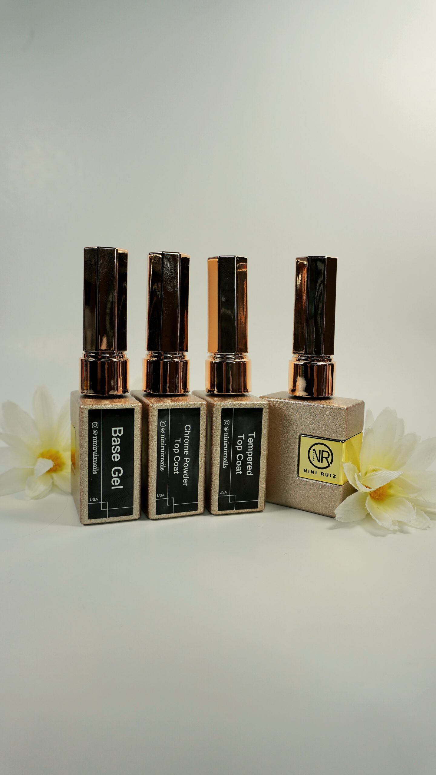 Combo: Base Gel – Tempered Top Coat – Chrome Powder Top Coat